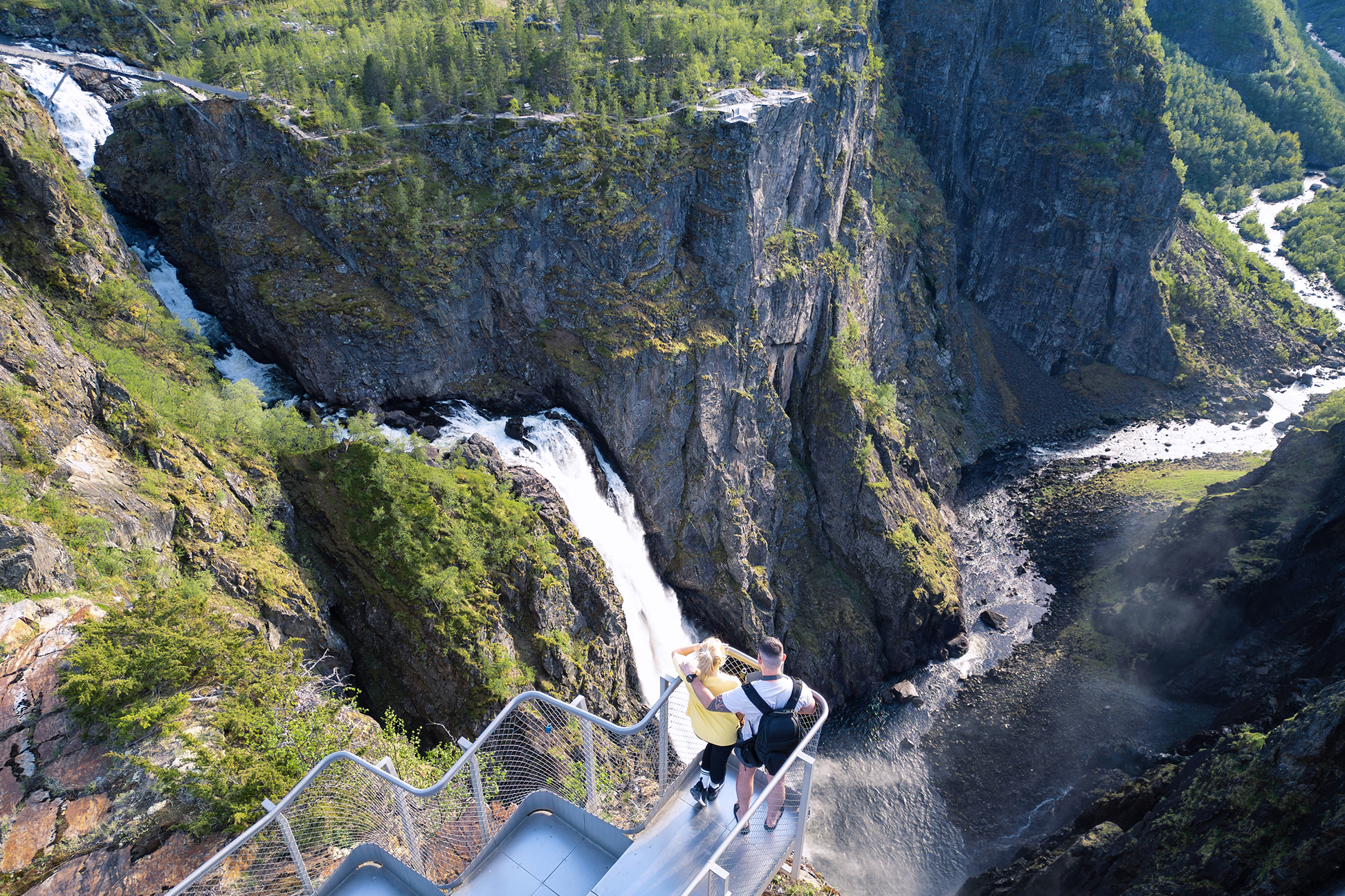 Waterfall and green mountains in Eidfjord
