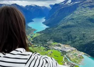 Towering peaks, glacial lakes and the breathtaking Briksdal Glacier create a stunning natural backdrop in this peaceful Norwegian village.