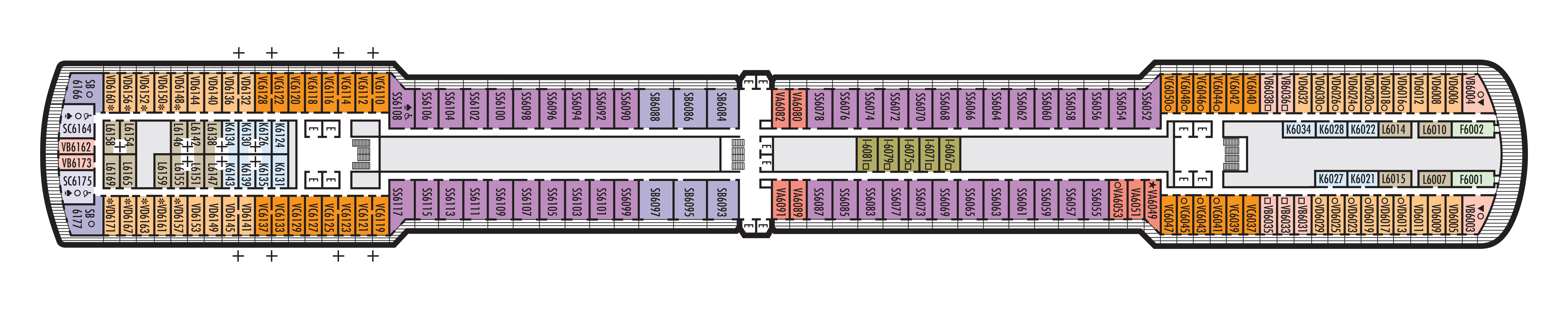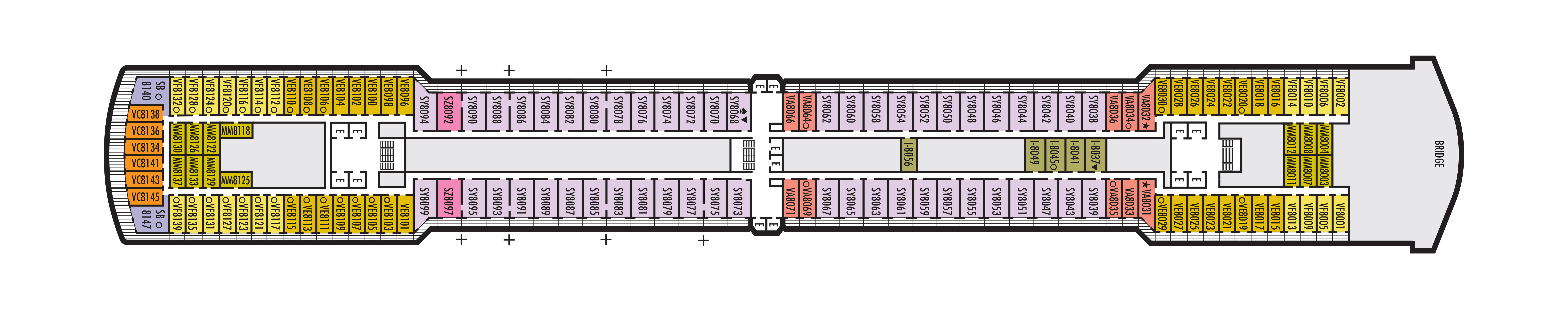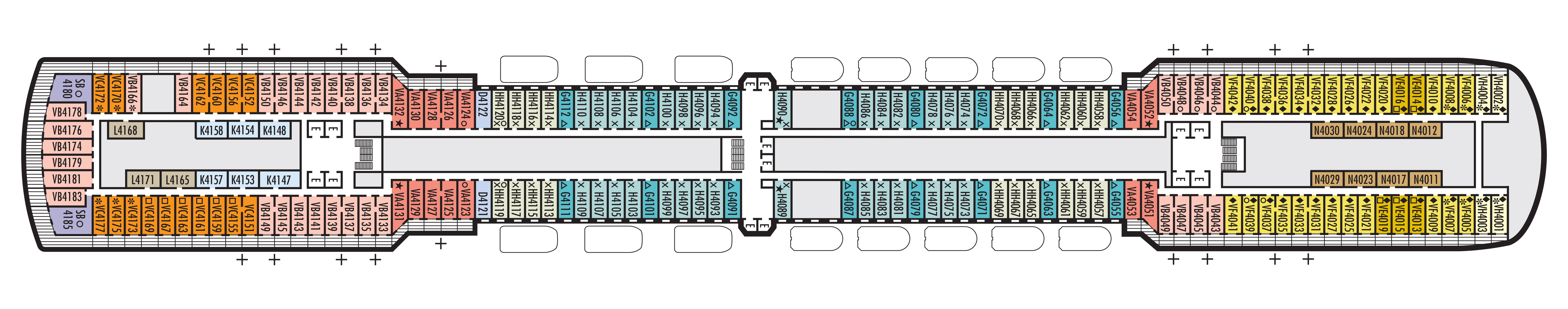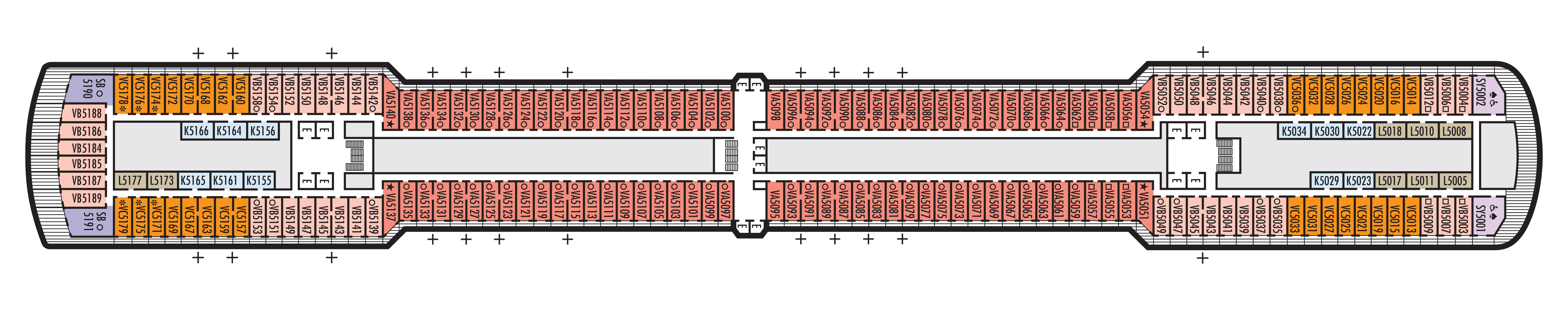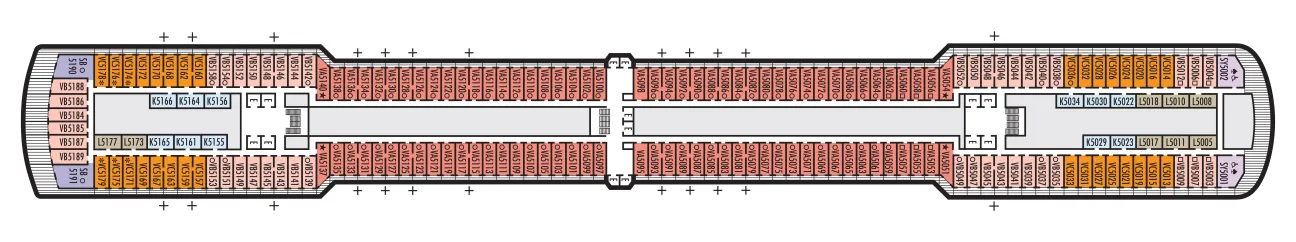 - A variety of cabins are available on this deck; see accommodation descriptions for details.
