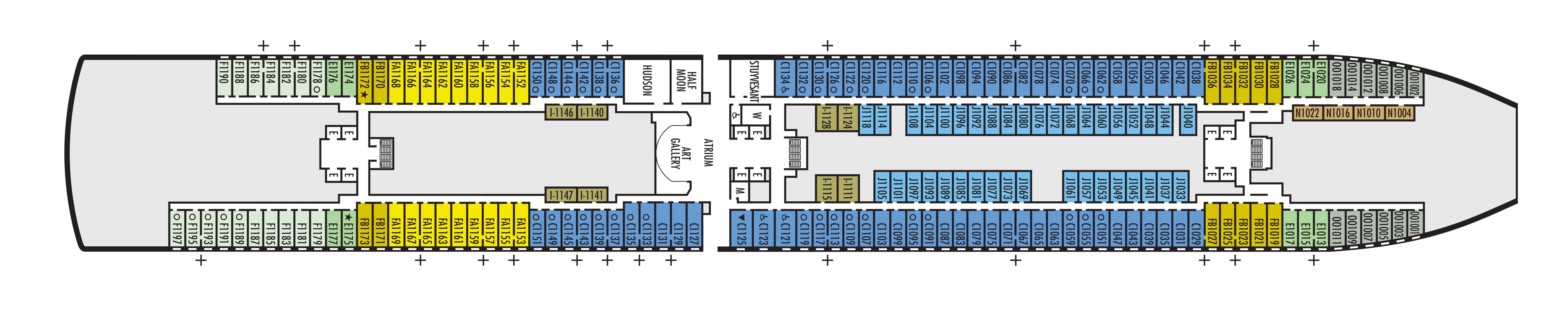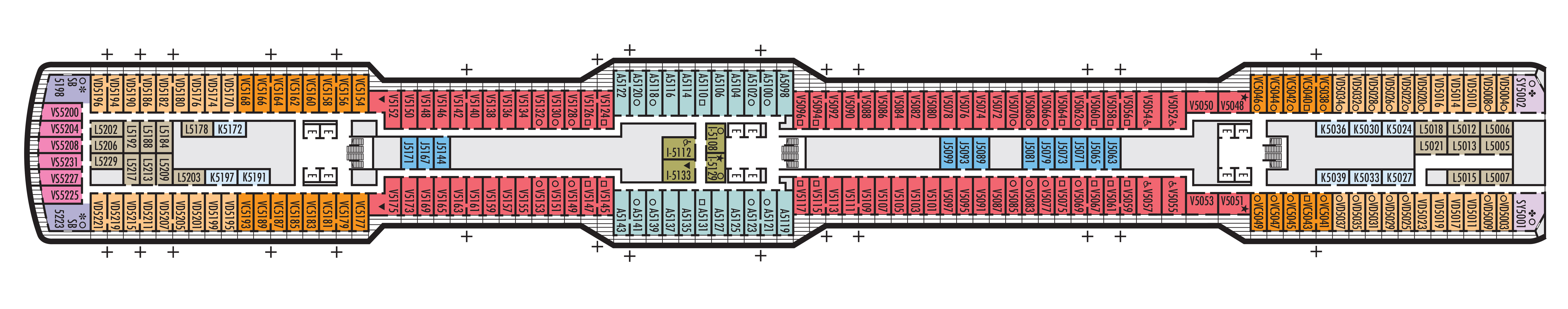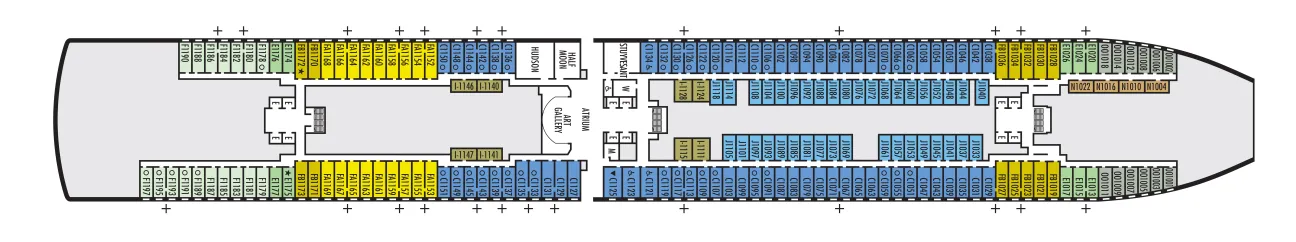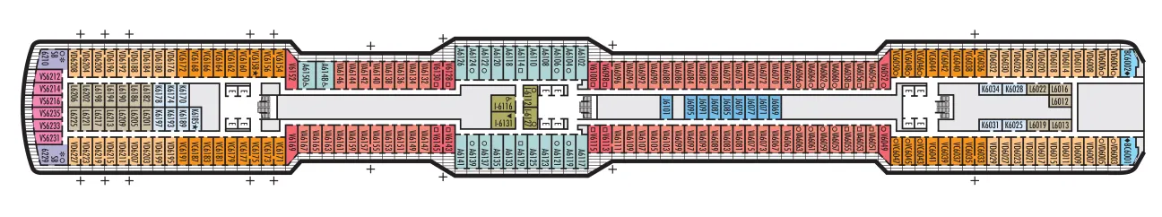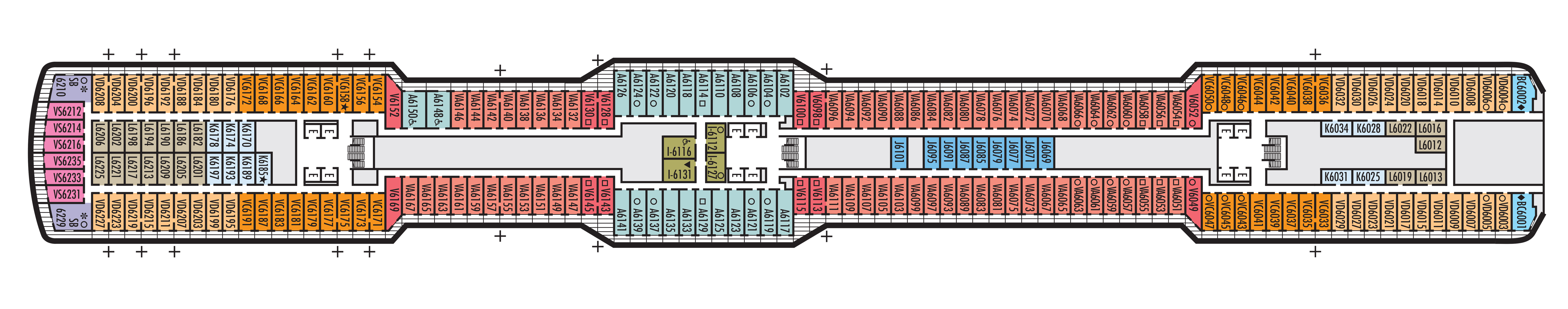 - A variety of cabins are available on this deck; see accommodation descriptions for details.