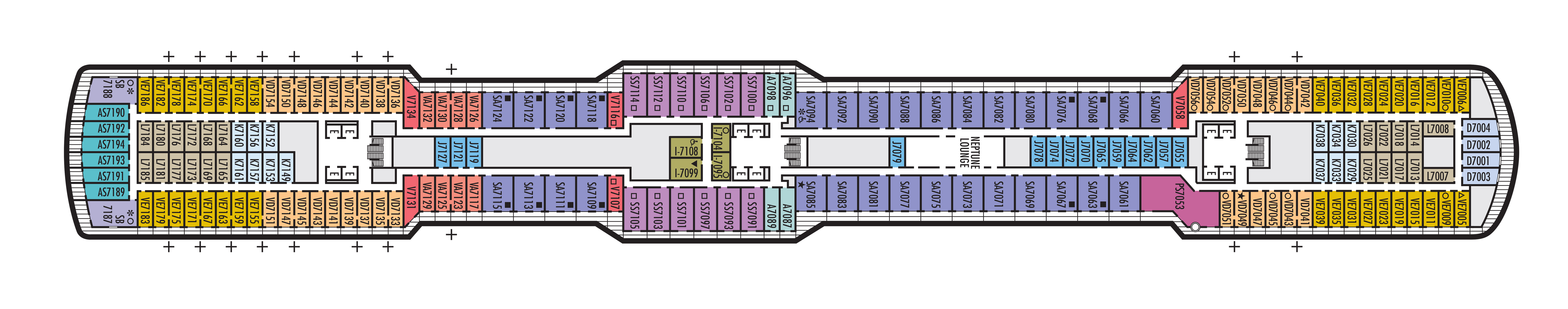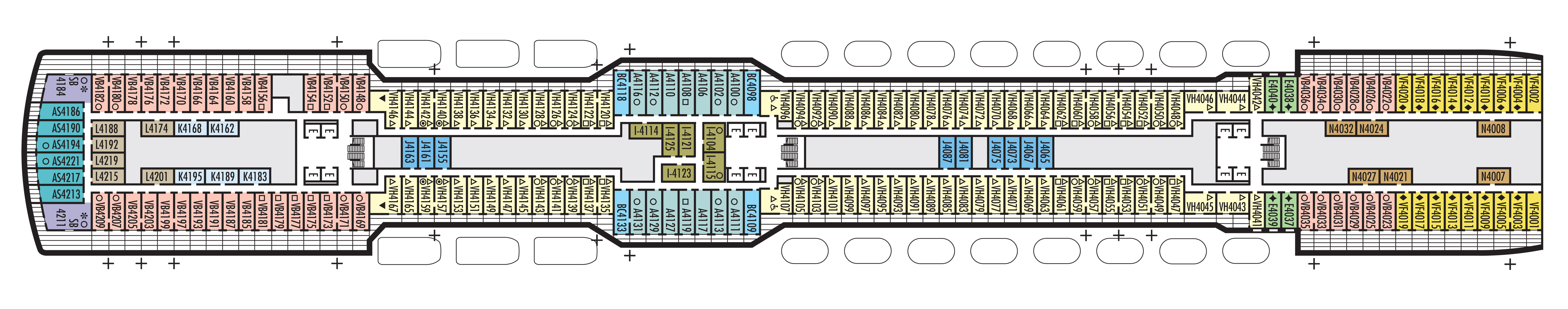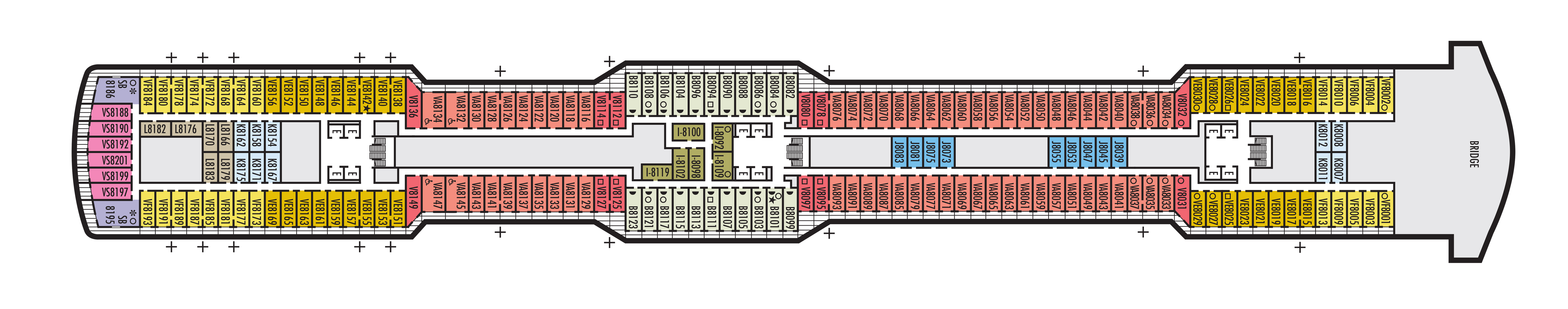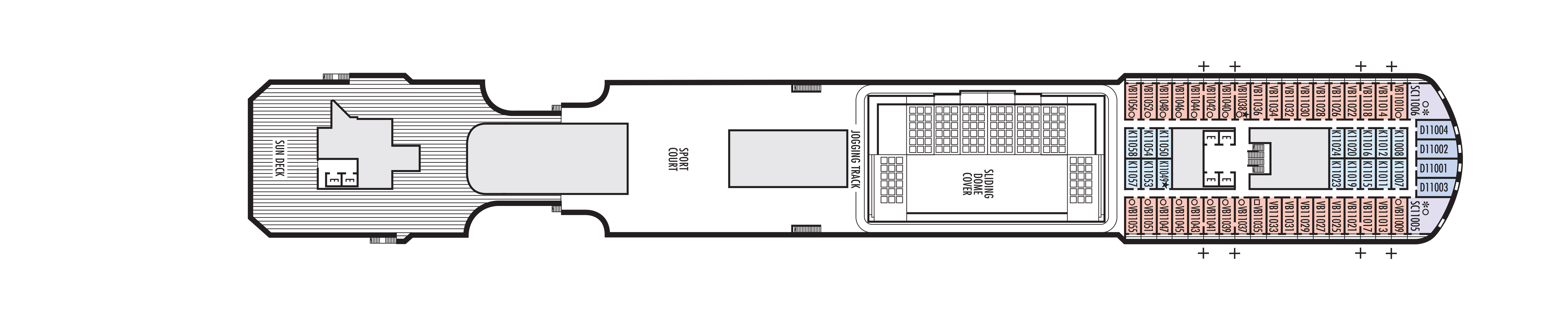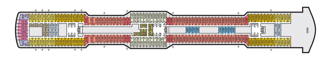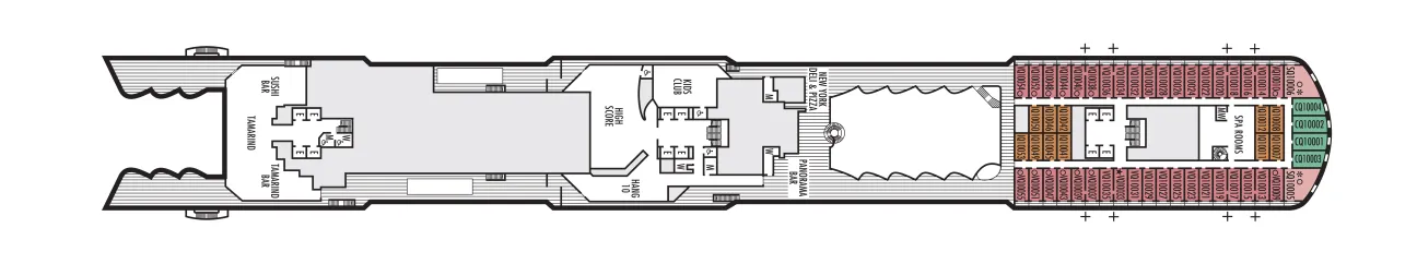 - Some cabins are available on this deck; see accommodation descriptions for details.