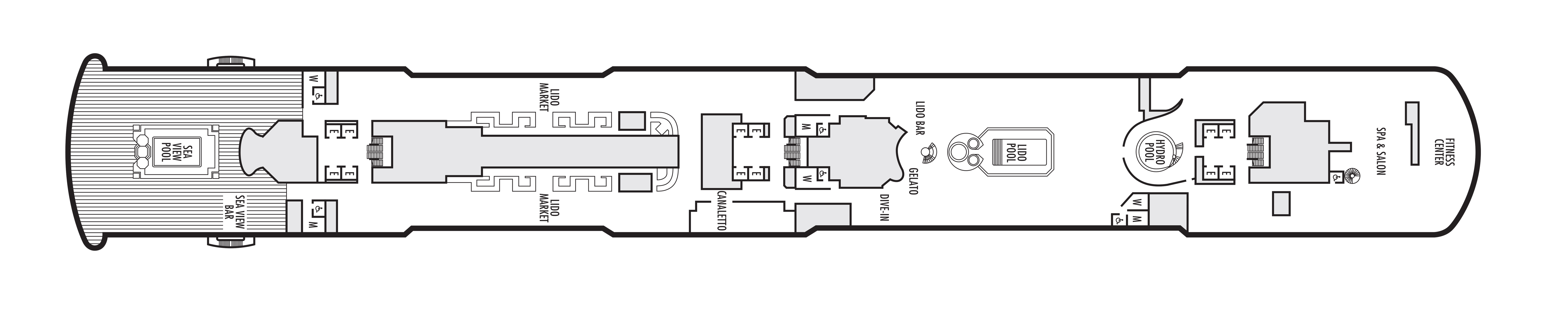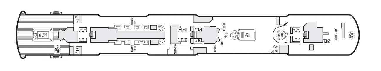 - You're never far from R&R on this deck. The Lido deck pools, Fitness Center and Greenhouse Spa & Salon await a deck above.