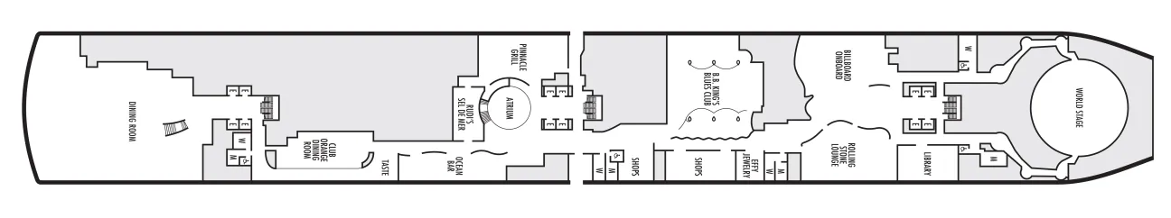- World Stage features innovative cruise ship shows and a two-story LED screen that creates a vivid wraparound display.